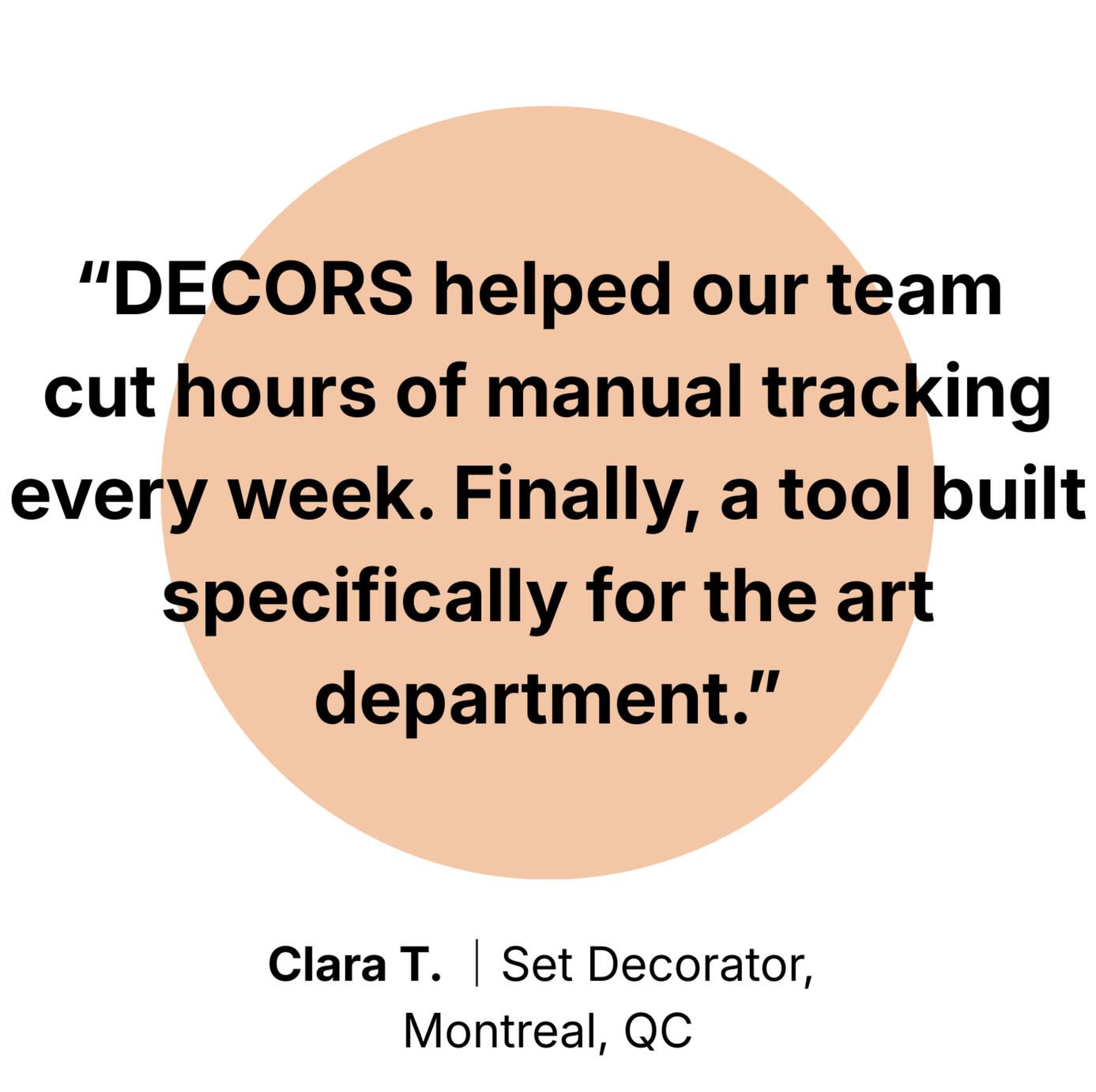 Designed by a seasoned Set Dec professional, DECORS was built from real production experience — not theory. It comes from years of budgets, receipts, continuity photos, vendor runs, and spreadsheets that never quite worked.Every feature reflects the actual workflow of set decoration: organizing inventory, managing rentals, tracking expenses, and keeping continuity on track.Shaped in trucks, workshops, warehouses, and on set, DECORS was created for one purpose: to give Set Dec the tool it always deserved.